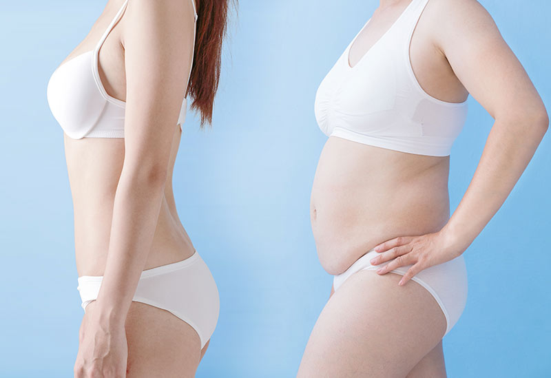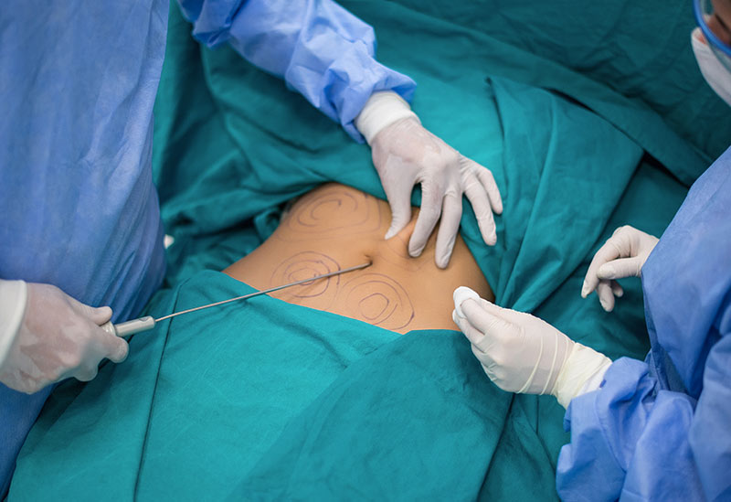 Chaque fois qu'il existe des lésions importantes de la peau avec une distension notable, de nombreuses vergetures, des cicatrices, la lipoaspiration isolée sera insuffisante. La plastie abdominale est alors nécessaire...
