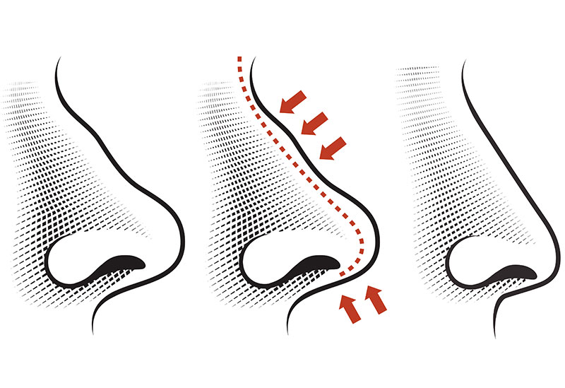 - Rhinoplastie : le but est d'obtenir un nez d'aspect naturel, s'harmonisant dans ses rapports avec les autres traits du visage